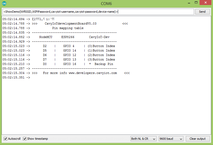 <ShowDemo(WiFiSSID, WiFiPassword, CavyIoT-username, password, device)>